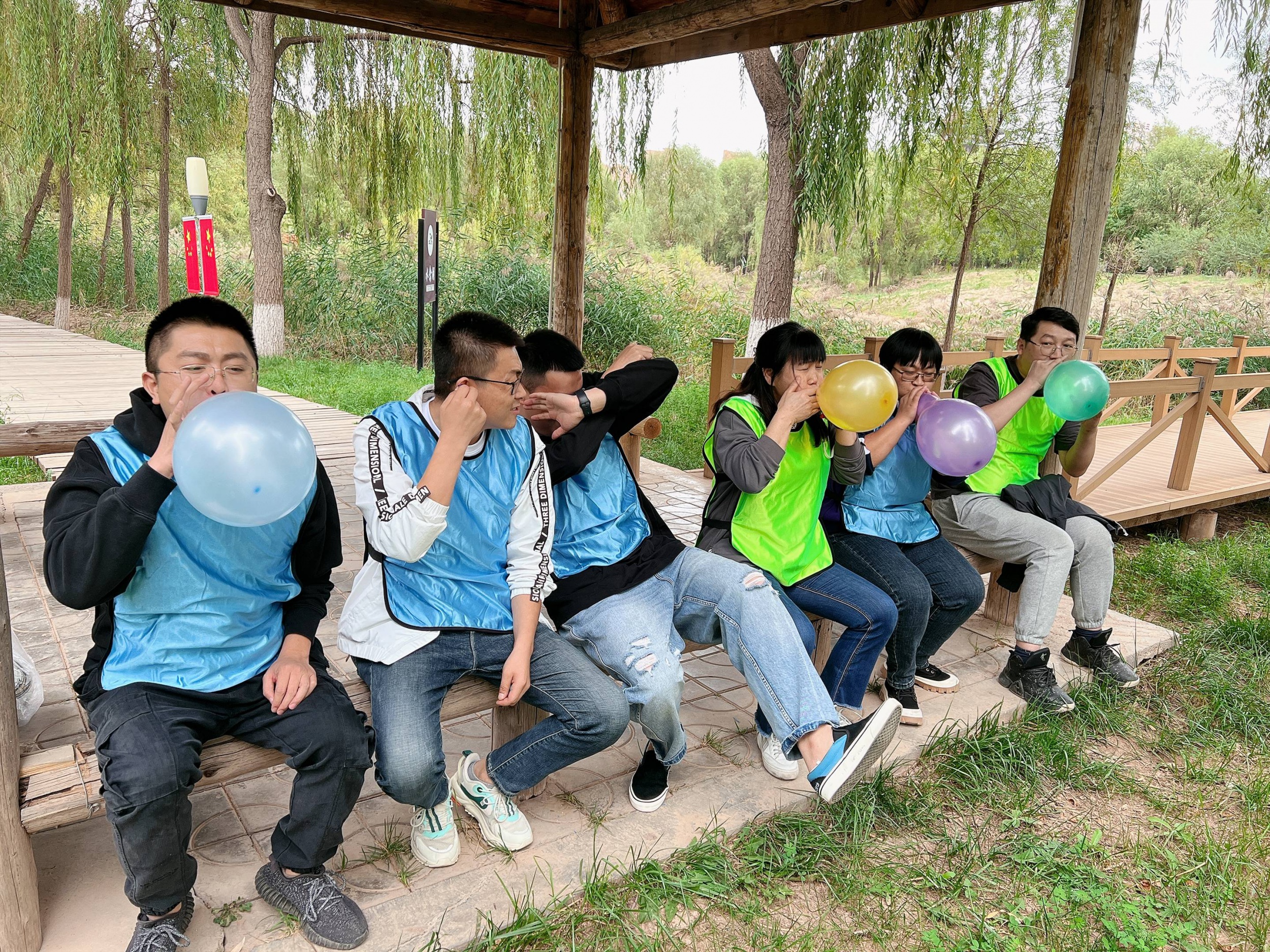 限時(shí)吹氣球活動開始了,同事們一個(gè)個(gè)把臉漲得通紅,有的要么直接吹爆,有的要么吹得太小,只有最認(rèn)真的第一位同事取得了勝利。