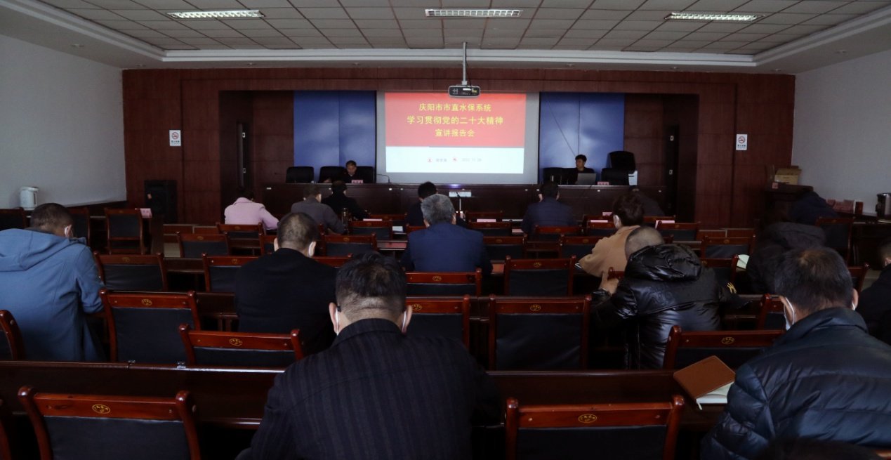 本站訊 ?11月28日,慶陽市水保局邀請隴東學院馬克思主義學院黨總支書記、副教授、慶陽市委宣講團成員、南梁干部學院特聘教授謝學旗同志,為市直水保系統(tǒng)作題為“新時代新征程堅持和發(fā)展中國特色社會主義的政治宣言和行動綱領”的黨的二十大精神學習教育專題講座。市水保局總工程師胡中生主持并講話,市水保局、市水保監(jiān)測分站、市水??茖W試驗推廣站全體干部職工共80多人聆聽了講座。
